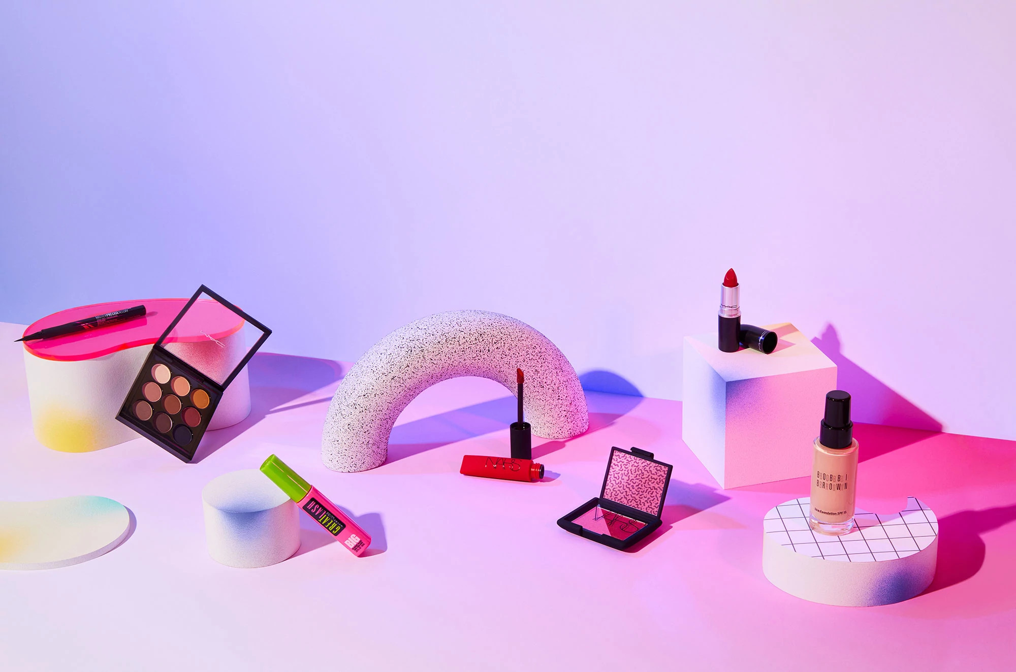 Makeup product on bright neon colored background