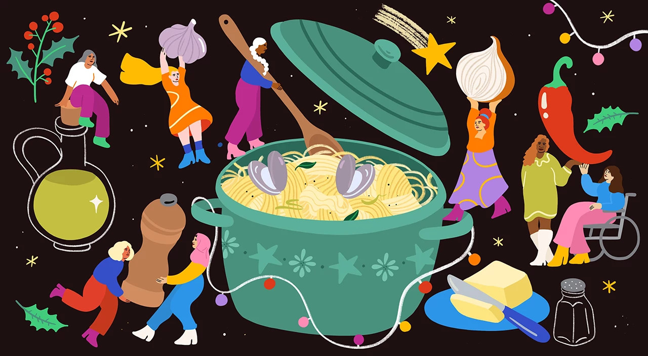 “Growing up, my family always celebrated Christmas Eve with a big seafood feast, which included the classic Italian dish linguine with clam sauce. This dish was a family favorite, and my mom would spend hours in the kitchen preparing it for our holiday meal. After my mom passed away a few years ago, my siblings and I decided to carry on the tradition of the Christmas Eve seafood feast in her memory. And, of course, no feast would be complete without the linguine with clam sauce.”