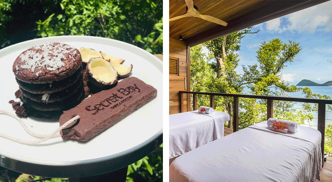 Relais & Châteaux rainforest resort Secret Bay’s turndown service Sweet Treats for Sweet Dreams is — psst! — an open secret. A decadent artistic presentation is comprised of no less than four stacked coconut and cacao cookies on a deconstructed cookie, surrounded by coconut made using cacao, and a slab of cacao embossed with the hotel logo. Executive chef Damith Ranaweera explains that the cacao and coconut are locally sourced, and adds: “The recipe is vegan, vegetarian and gluten free, which means pretty much every guest can indulge.” Consistently earning its Green Global Certification, the hotel’s sustainable approach to cuisine is reflected in the choice of cacao and coconut because these two ingredients embody island flavors, intimately connecting guests with the spirit of the land.